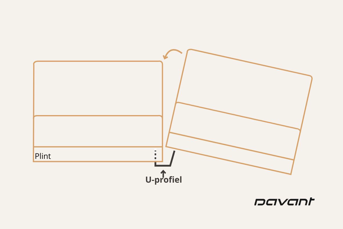- bij twee banken met plint gebruik je 1 U-profiel, bij drie 2, bij vier 3 enz.
