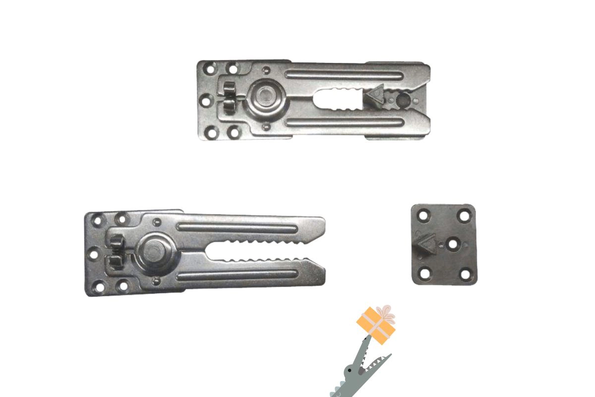 Elementenbanken op pootjes behoeven een koppeling. De krokodillenbekverbinding bevestigen we met schroeven onder de banken van een wandopstelling. Je schuift de krokodillenbek eenvoudig onder de bank weg, indien gewenst.