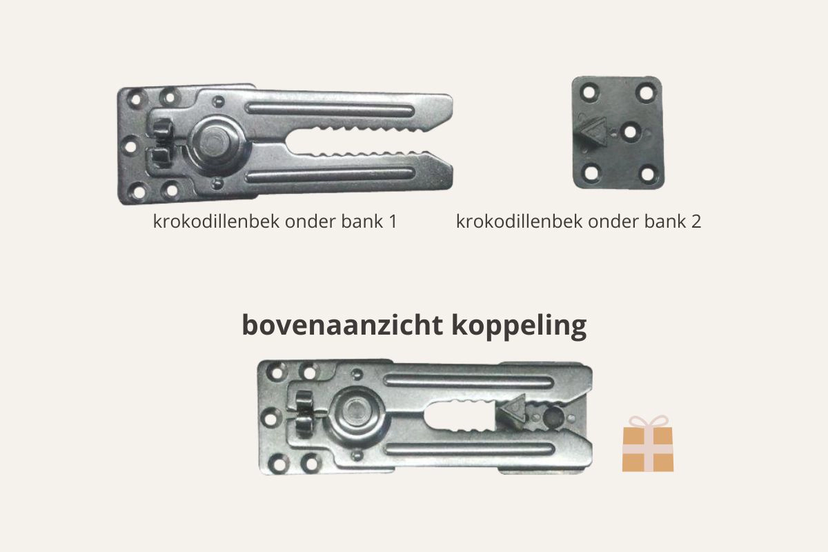 - de krokodillenbek-verbinding schuif je eenvoudig onder de bank weg, indien gewenst